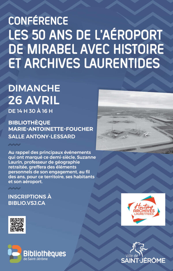 Cette conférence est présentée par le Service des bibliothèques de la Ville de Saint-Jérôme, en collaboration avec Histoire et Archives Laurentides. L’entrée est libre, mais il est préférable de s’inscrire à biblio.vsj.ca.